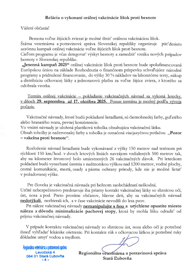 Orálna vakcinácia líšok - jesenná kampaň 2025