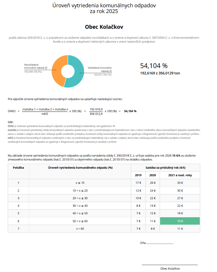 Uroveň vytriedenia komunálnych odpadov za rok 2025