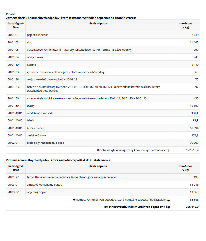 Ročný výkaz o komunálnom odpade z obce
